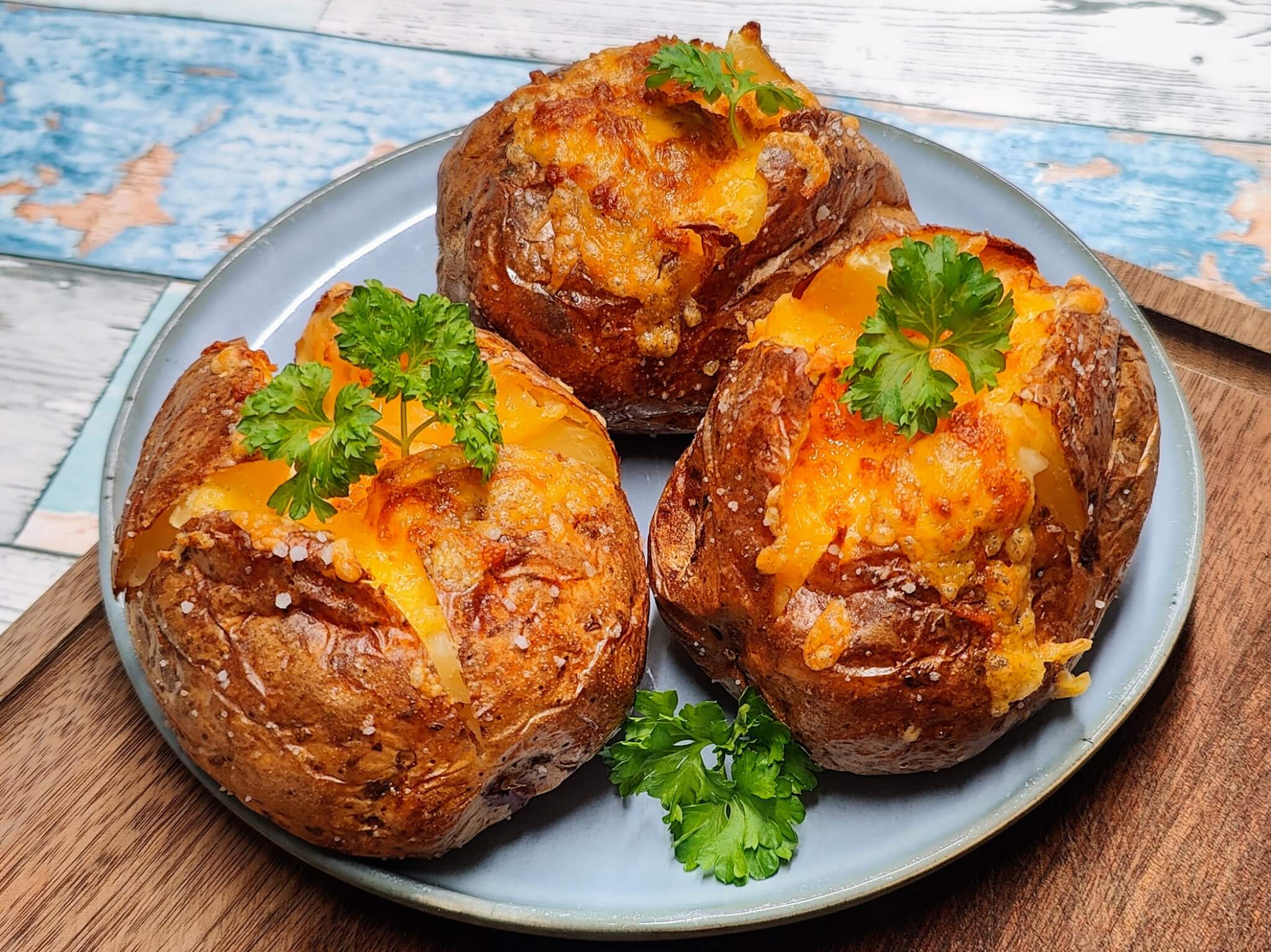 - Tilberedning i ovn: Bag kartoflerne i en forvarmet ovn ved 200℃ i ca. 1 time eller til de er møre. Prøv at stikke i kartoflerne. Bagetiden afhænger af kartoflernes størrelse.Tilberedning i airfryer: Kartoflerne tilberedes i airfryer ved 180 ℃ i ca. 45 minutter. Prøv at stikke i kartoflerne. Bagetiden afhænger af kartoflernes størrelse.