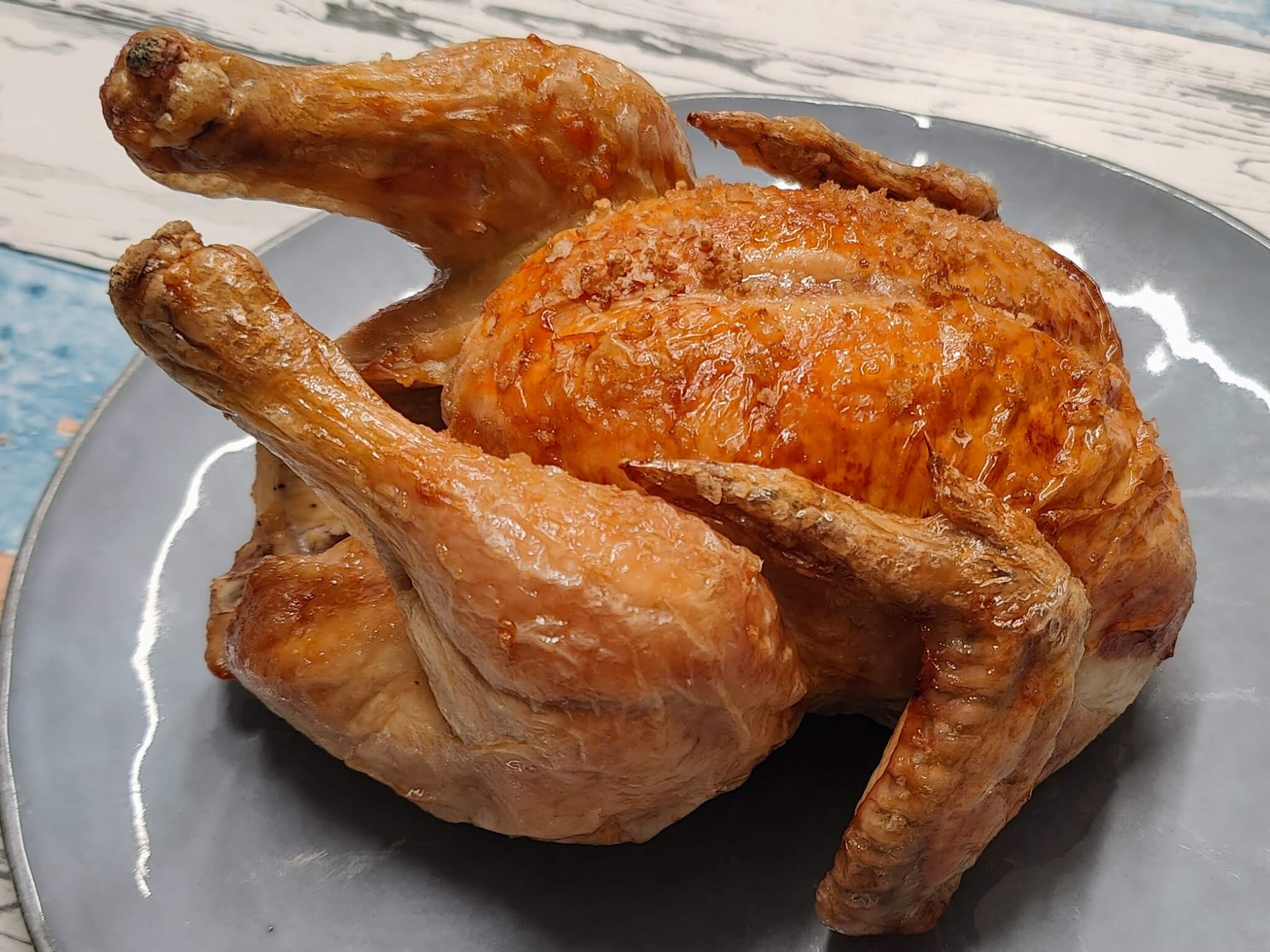- En hel kylling er mere saftig end kyllingefileter, fordi benene og skindet hjælper med at holde på fugten under stegning.
