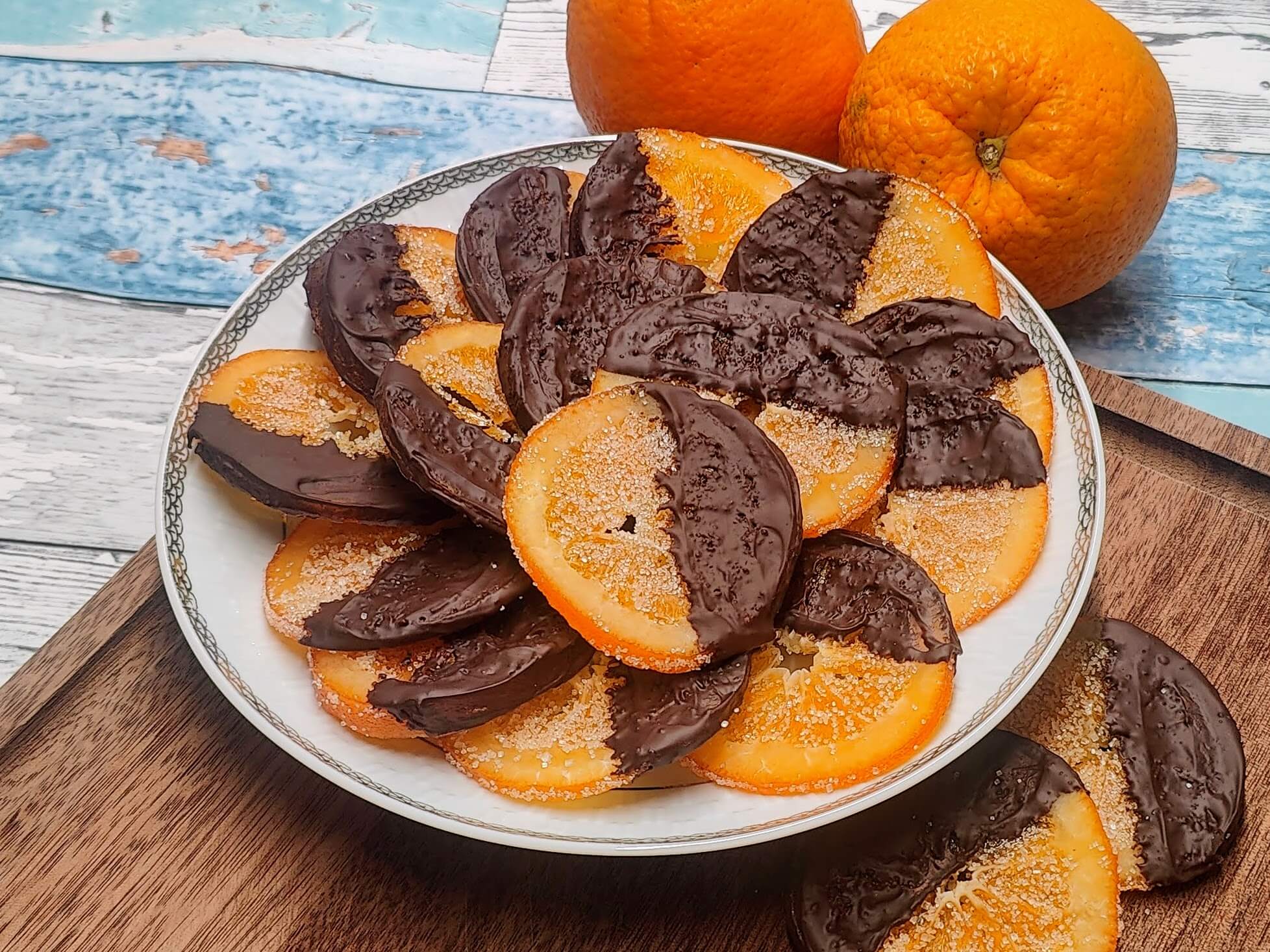 Denne klassiker er oplagt som hjemmelavet konfekt, spiselig gave eller som et raffineret indslag på dessertbordet. Kandiserede appelsinskiver med chokolade kræver få ingredienser, men resultatet fremstår eksklusivt og professionelt. Appelsinens naturlige aroma bevares, og den langsomme kogning i sukkerlage giver en smuk glans og intens smag.