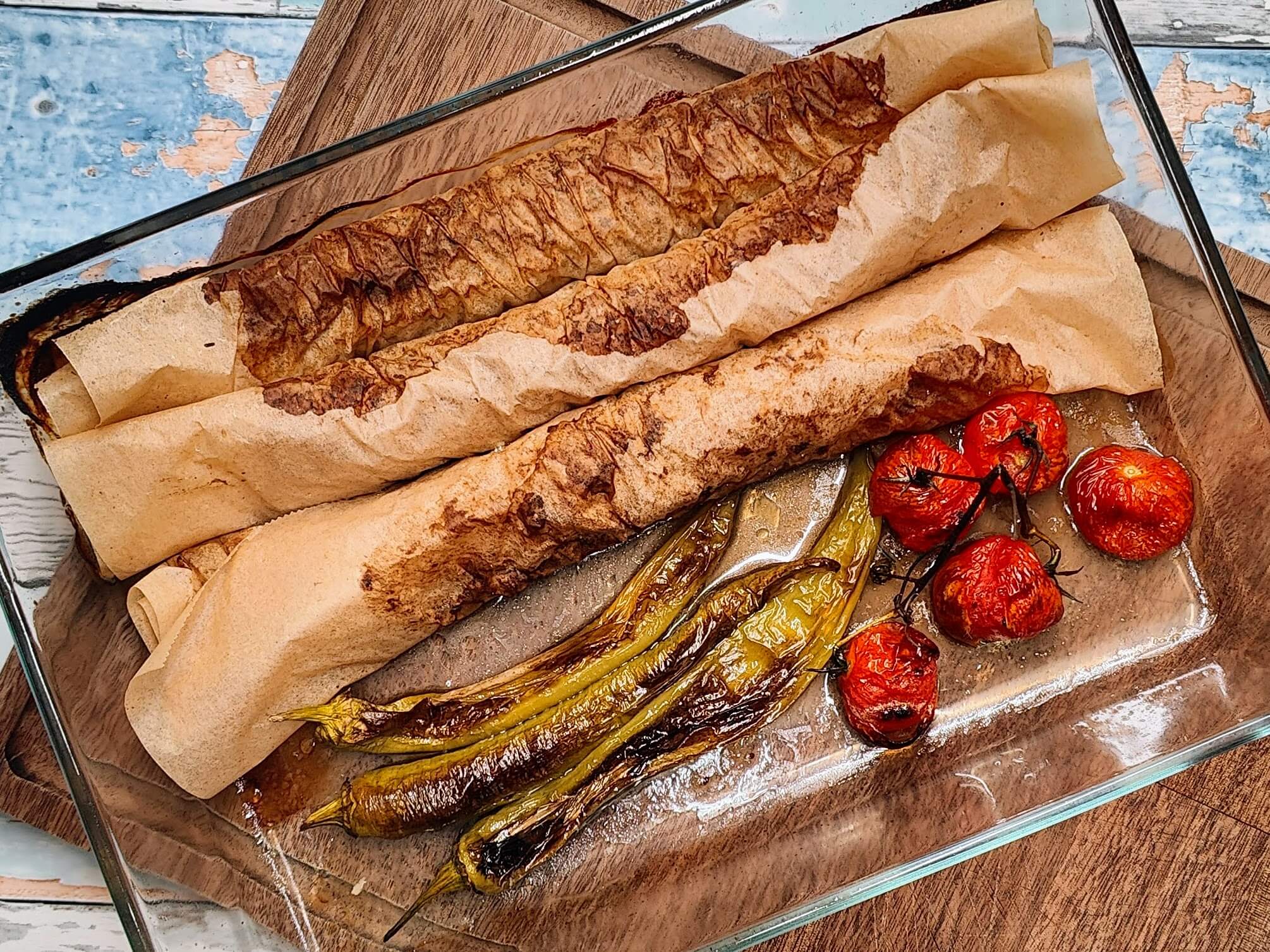Noget af det, der gør Hjemmelavet kebab ekstra lækker, er tilberedningen i ovnen. Her bages kødet sammen med tomater og grønne tyrkiske chilipebre, som bliver bløde, sødmefulde og let karamelliserede. Det skaber en harmonisk balance mellem krydret kød og friske grøntsager. Ønsker du mere sprødhed, kan kebaben kort steges på panden efterfølgende.