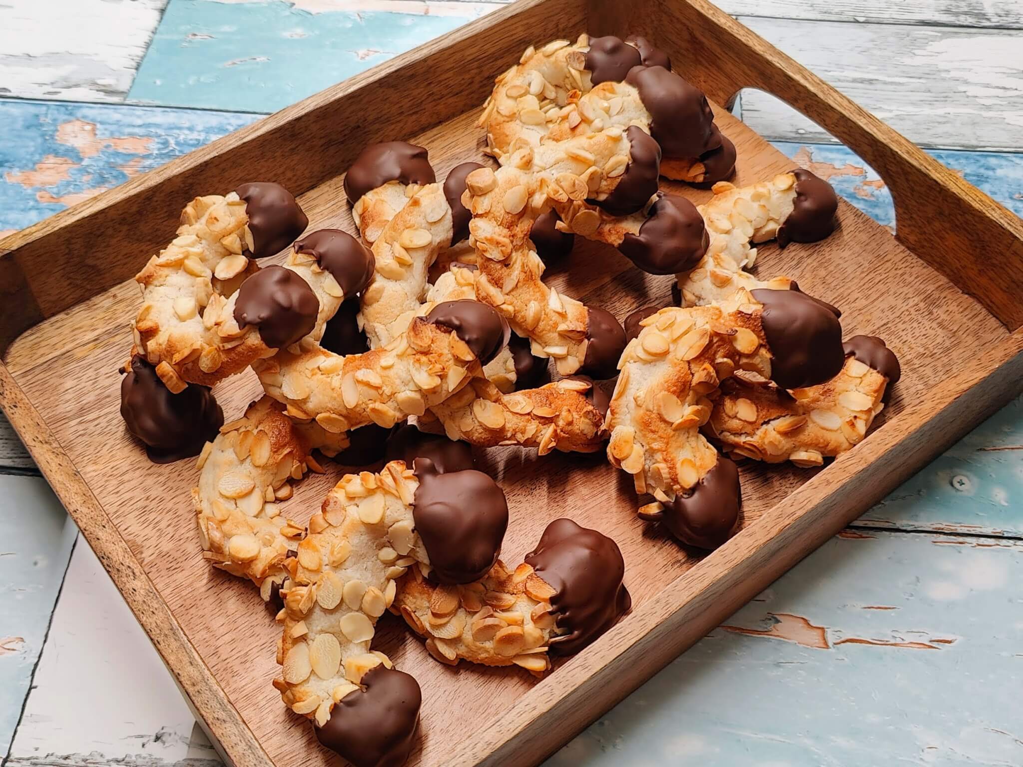 Når du bager Nøddehorn, er det vigtigt ikke at overbage dem. De skal være let gyldne og stadig bløde i midten, så konsistensen forbliver saftig. Efter afkøling samler chokoladen smagen og giver et flot, professionelt udtryk. Nøddehorn er derfor et sikkert valg, når du ønsker hjemmebag med høj kvalitet og tidløs smag. Velbekomme.